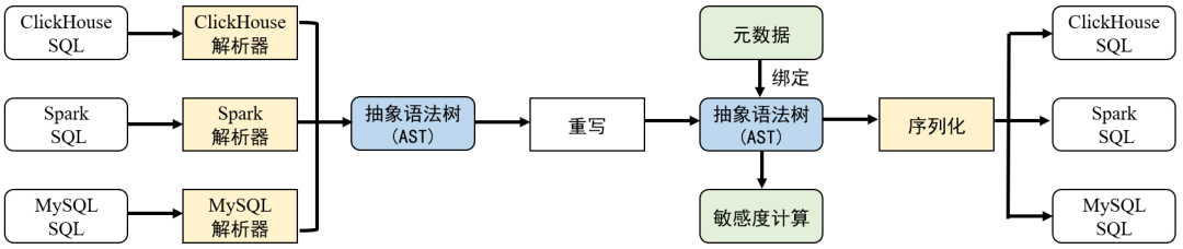 2.2.1 多源异构数据库 SQL 解析与重写机制采用灵活可扩展的 SQL 解析机制(parser),可支持多种 SQL 方言,与传统数据库查询无差别。采用定制化的 SQL 重写机制(rewriter),可支持多种语法特征,例如聚合函数、多层子查询、join、group by 等。