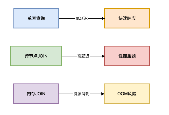 跨节点数据关联需业务层实现网络传输成为性能瓶颈事务一致性难以保障