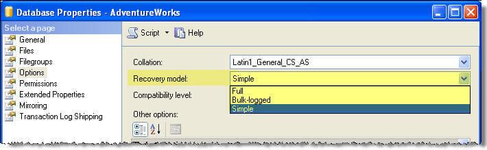 复制ALTER DATABASE AdventureWorks SETRECOVERY SIMPLE