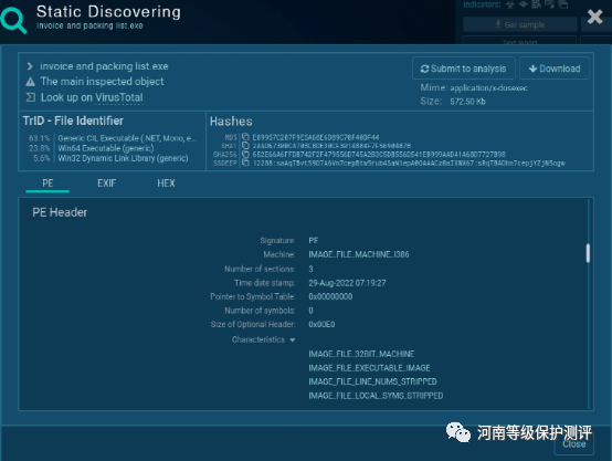 步骤 2. 查看静态属性这是静态恶意软件分析的阶段。在不运行的情况下检查可执行文件:检查字符串以了解恶意软件的功能。哈希、字符串和标头的内容将提供恶意软件意图的概述。