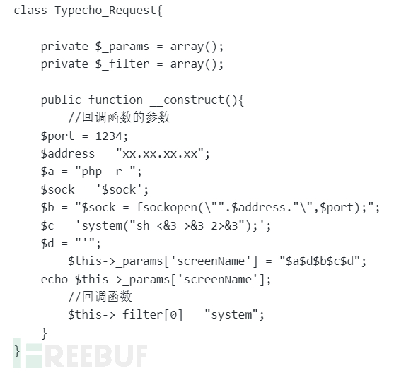 $_item[category] = array(new Typecho_Request()); $this->_items[0] = $_item; }}class Typecho_Request{ private $_params = array(); private $_filter = array(); public function __construct(){ //回调函数的参数,即想要执行的命令