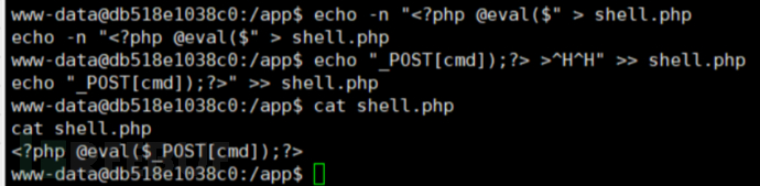 最后我还是用老办法,将这个一句话木马分开,按两次写入shell.php,查阅了一下echo命令的一个详细用法,于是就有了下图