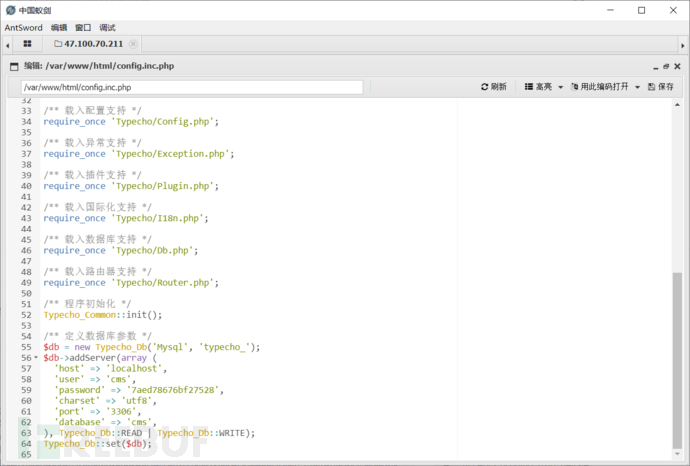 按照上次做渗透测试1的经验,flag应该在数据库里面,查看config.inc.php,拿到数据库账号密码,