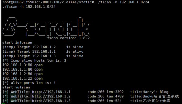 执行ip addr show命令后发现还有一层192.168.1.2/24的网段,传一个fscan上去扫一下