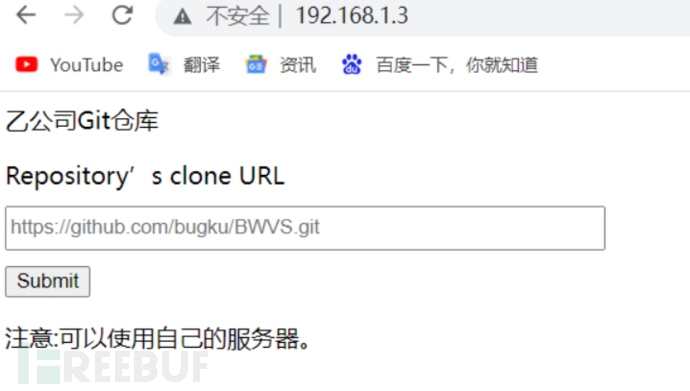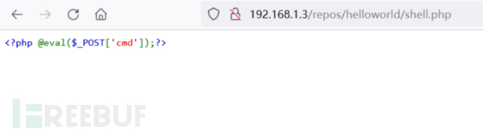 这里可以克隆仓库,而且可以访问到克隆的仓库里的文件,你说这种是不是很像文件上传,于是我自己建了个仓库,放上一句话木马,clone后访问发现它直接将文件内容输出了,并没有执行解析