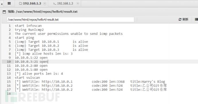 看一下结果,提示192.168.0.3:80的title是不一样的,挂一个frp,访问一下该站点
