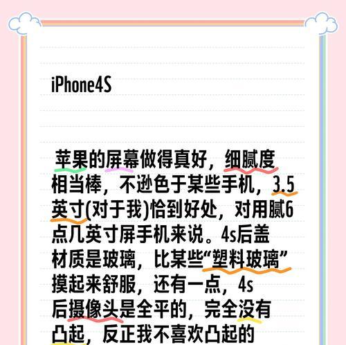通过深入探索苹果4S的设置功能,我们可以更好地使用这款经典旗舰手机。无论是个性化外观还是隐私与安全,苹果4S提供了丰富的设置选项,以满足用户的需求。希望本文能为读者提供有价值的指导,并助力大家更好地探索和使用苹果4S的设置功能。