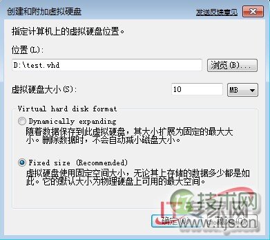 依次点击“开始”→“运行”,解析输入diskmgmt.msc可打开磁盘管理器。拟磁在磁盘管理器中执行“操作”→“创建 VHD”弹出创建和附加虚拟磁盘向导对话框。应用分别输入虚拟磁盘文件的实例保存位置(本例为D:test1.vhd),虚拟磁盘大小(本例为10MB,我们可以根据需要更改单位为MB/GB/TB),勾选“Fixed size”设置虚拟磁盘使用固定的空间大小,当然也可点选“Dynamically expanding”根据保存的数据动态调节大小。设置完成后点击“确定”则系统自动完成虚拟磁盘的创建。(图1)