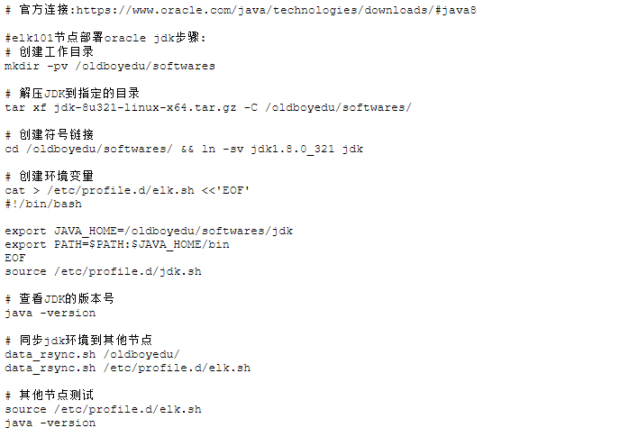 # 安装服务 yum -y localinstal elasticsearch-7.17.3-x86_64.rpm # 修改配置文件 egrep -v "^#|^$" /etc/elasticsearch/elasticsearch.yml cluster.name: oldboyedu-elk node.name: oldboyedu-elk103 path.data: /var/lib/elasticsearch path.logs: /var/log/elasticsearch network.host: 10.0.0.103 discovery.seed_hosts: ["10.0.0.103"] # 启动服务 systemctl start elasticsearch.serviceOpenJDK切换Oracle JDK并修改堆内存大小