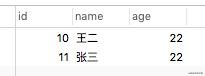 public void testInvokeBInTwoClass(){ User user = User.builder().id(10).name("王二").age(22).build(); userDao.addUser(user); transactionB.testB();}1.2.3.4.5.6.7.8.9.发现数据库中的数据为: