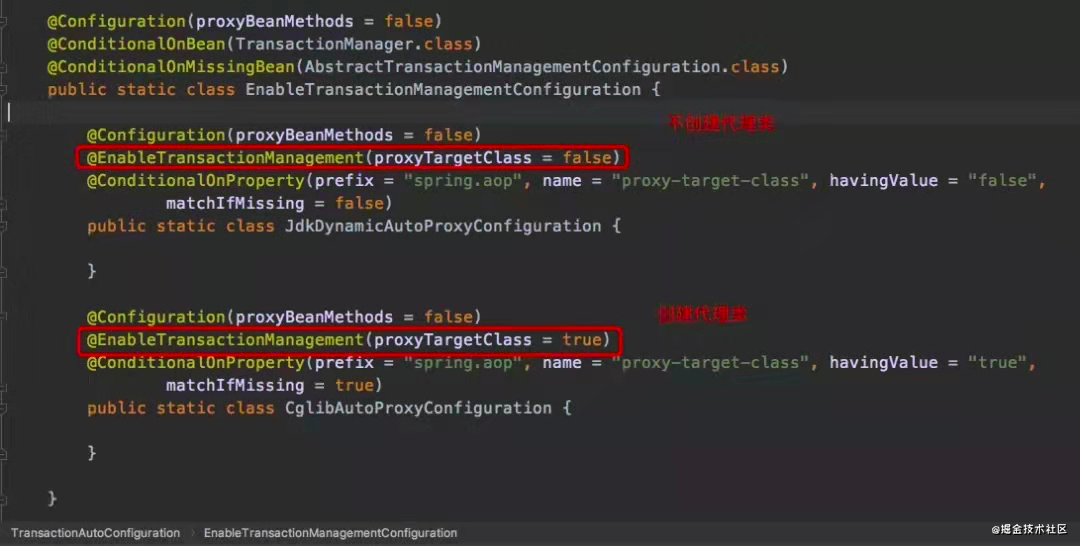 @EnableTransactionManagement 这个注解开启事务,其实和我们自己使用@EnableTransactionManagement是一样的 因此,只要我们在 SpringBoot 中引入了 spring-boot-starter-jdbc 这个依赖以后,我们就只需要使用 @Transactional 就可以了。