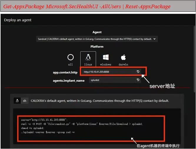CALDERA代理部署CALDERA代理部署,共有sandcat、ragdoll、Manx三种代理可选。本文以sandcat为例,其余两种参考sandcat执行。