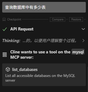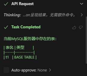 4.测试配置完成后,在Cline聊天框,输入你的请求,就能返回数据库里的数据,比如: