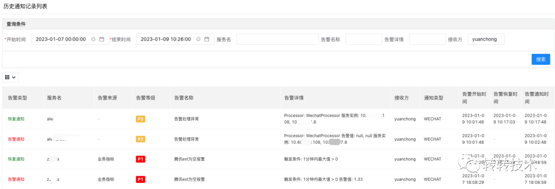如:P4/P5的告警初始时会等待3m收集告警,并将当前告警接收者的所有告警汇总到一条通知内;