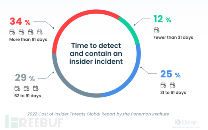根据波耐蒙研究所发布的《2022年内部威胁成本全球报告》显示,检测和控制内部威胁事件平均需要85天。只有12%的内部事件在31天内得到控制。