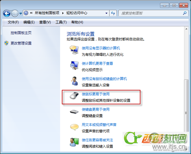 2、在“轻松访问中心”下选择“更改鼠标的工作方式”,WordPress模板在打开的“使鼠标更易于使用”窗口里,