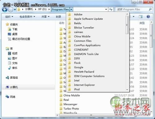 Windows 7资源管理器在管理方面设计,更利于用户使用,特别是在查看和切换文件夹时,查看文件夹时,上方目录处会显示根据目录级别依次显示,中间还有向右的小箭头。