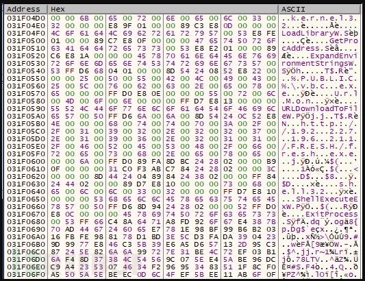 部署的shellcode是利用了CVE-2017-11882漏洞,这是方程式编辑器中的一个远程代码执行错误,已于2017年11月修复,但是目前依旧还在被利用。此前,该漏洞披露后就引起黑客的广泛关注,其缓慢的修补过程使其成为2018 年被利用最多的漏洞之一。