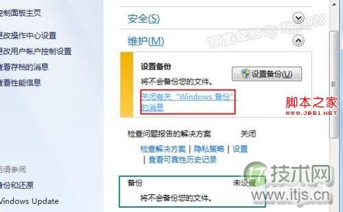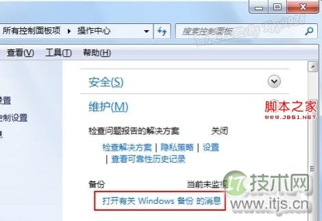 点击下面出现的“关闭有关‘Windows备份’的消息”这个链接: